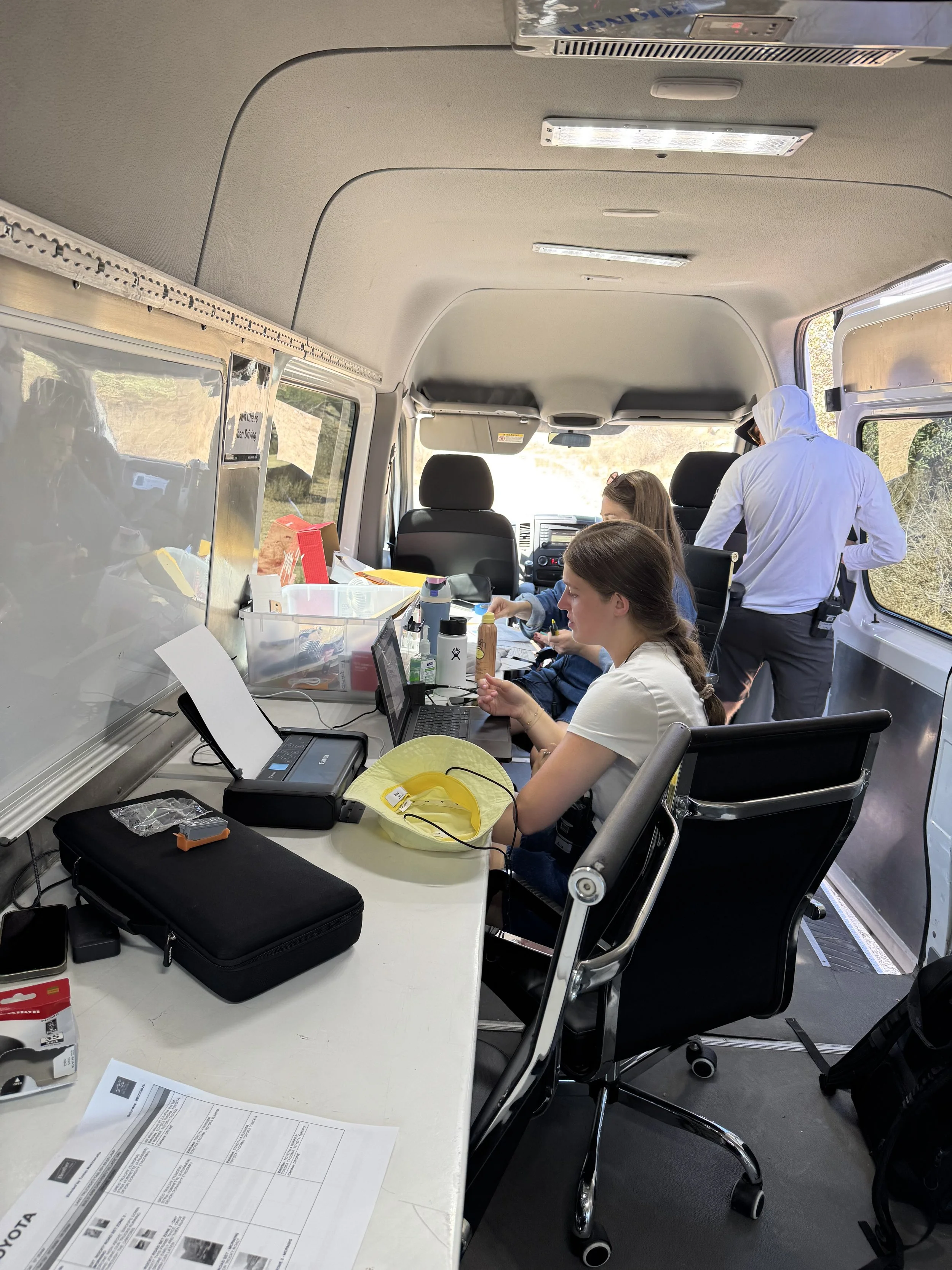 Along with “the toys,” we assembled our crew including frequent collaborator DP Jeff Sukes, our buddies at Filmotechnic, Greg Tracy - a highly accomplished Stunt Coordinator and Driver, and last but not least a stellar Assistant Director, Patrick Gorman, who masterfully kept the production train moving full steam ahead without derail. The logistics were a beast on this one! Feeding and hydrating 75 people in the middle of the desert in 90+ degrees while also being sustainable is no small feat! And then there is transportation for key personnel, the hauling of 3 hero vehicles and 3 duplicates, motorhomes for talent, 4x4 gators to haul crew and gear from basecamp to wherever we were filming, and a mobile production office for our Production Coordinator Anita, Annie and myself to work from….and that’s just a snapshot.